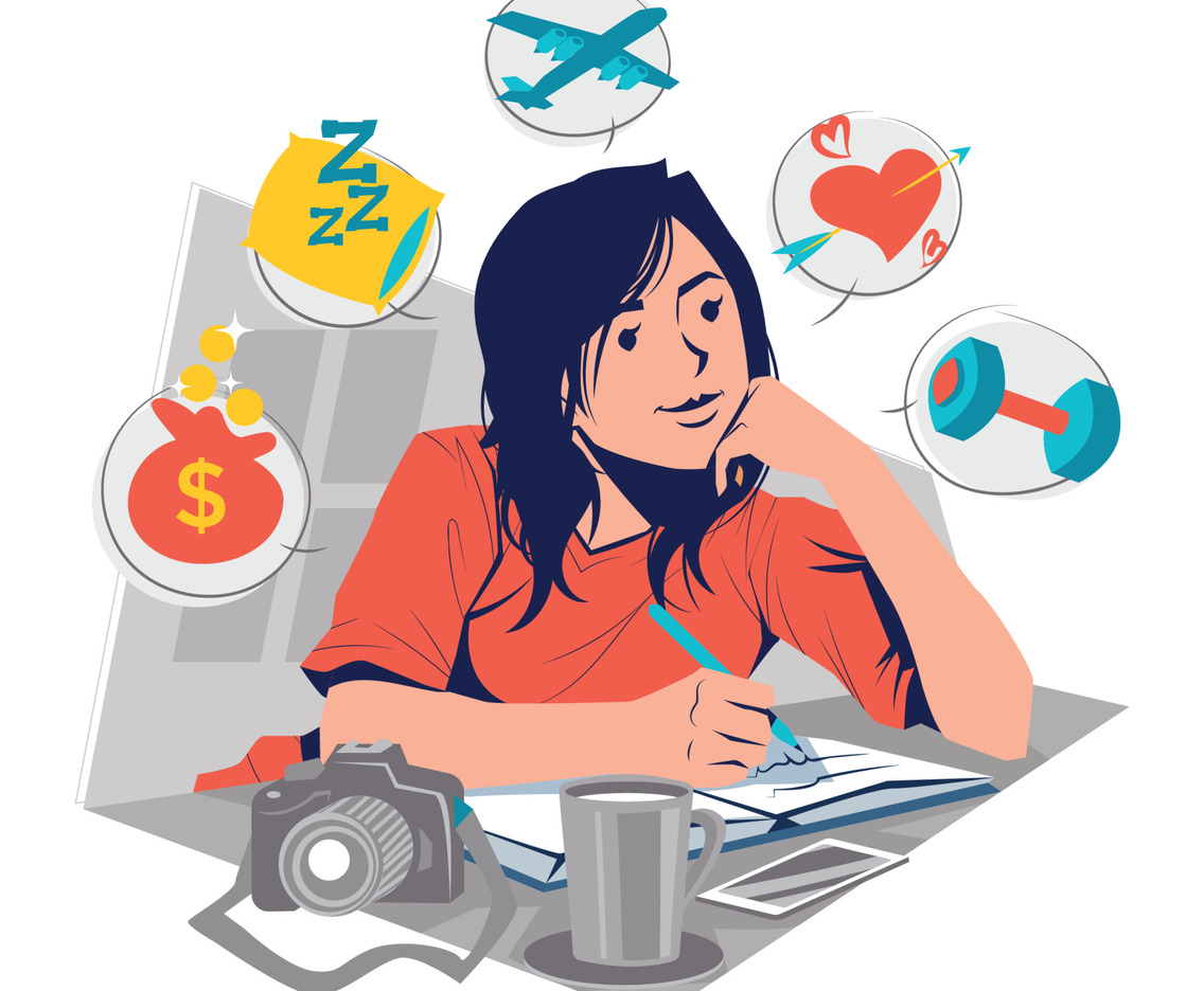 Girl Making a New Years Resolution List Concept